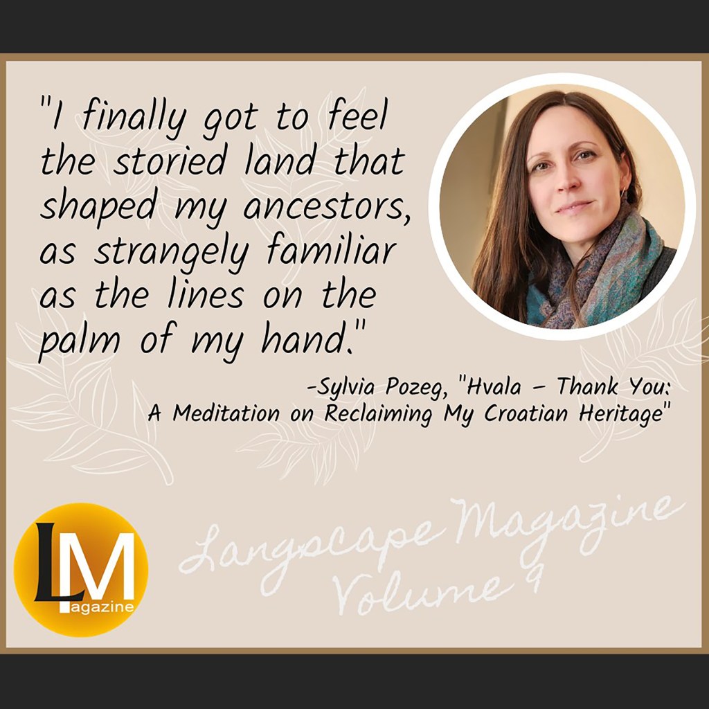 My contribution as described by the publisher – “Sylvia Pozeg’s artwork illuminates her longing to reconnect with her heritage. Her words and images span the gap from her upbringing in an immigrant community in Canada to the traditions, heritage, and relationship with nature of her Croatian homeland.” (Volume 9, July 2020)